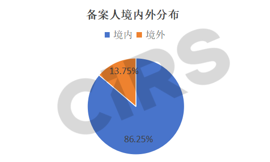 如下图1所示,2025年上半年取得备案号的80款化妆品新原料,69款化妆品新原料的备案人位于境内地区,占比约86.25%,11款化妆品新原料备案人位于境外地区,占比约13.75%;境内备案人数量远超境外备案人数量。