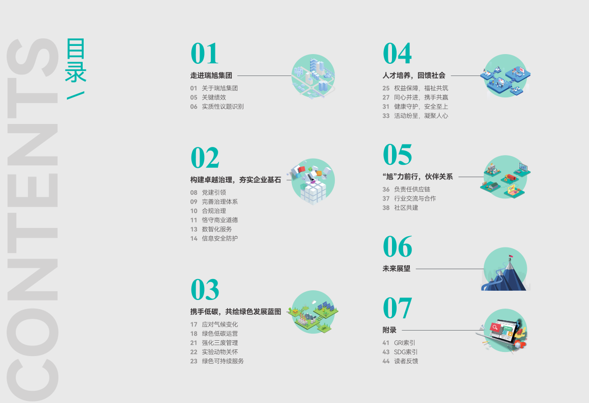 报告参考全球报告倡议组织GRI标准,基于环境(E)、社会(S)、治理(G)框架,在“卓越治理”,“低碳发展”,“人才培养”和“伙伴关系”四大领域全面披露了瑞旭集团在过去一年取得的可持续发展成就,旨在向所有利益相关方展示瑞旭在推动可持续发展层面的积极探索与实践。