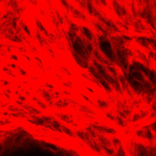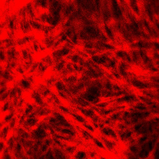 - 可以在二次谐波通道观察到胶原纤维(红色),平面图像主要特征为纹理结构,呈现条带状或网状,立体图像由于不同深度的胶原纤维叠加,主要呈现为立体网状或蓬松的云状结构。