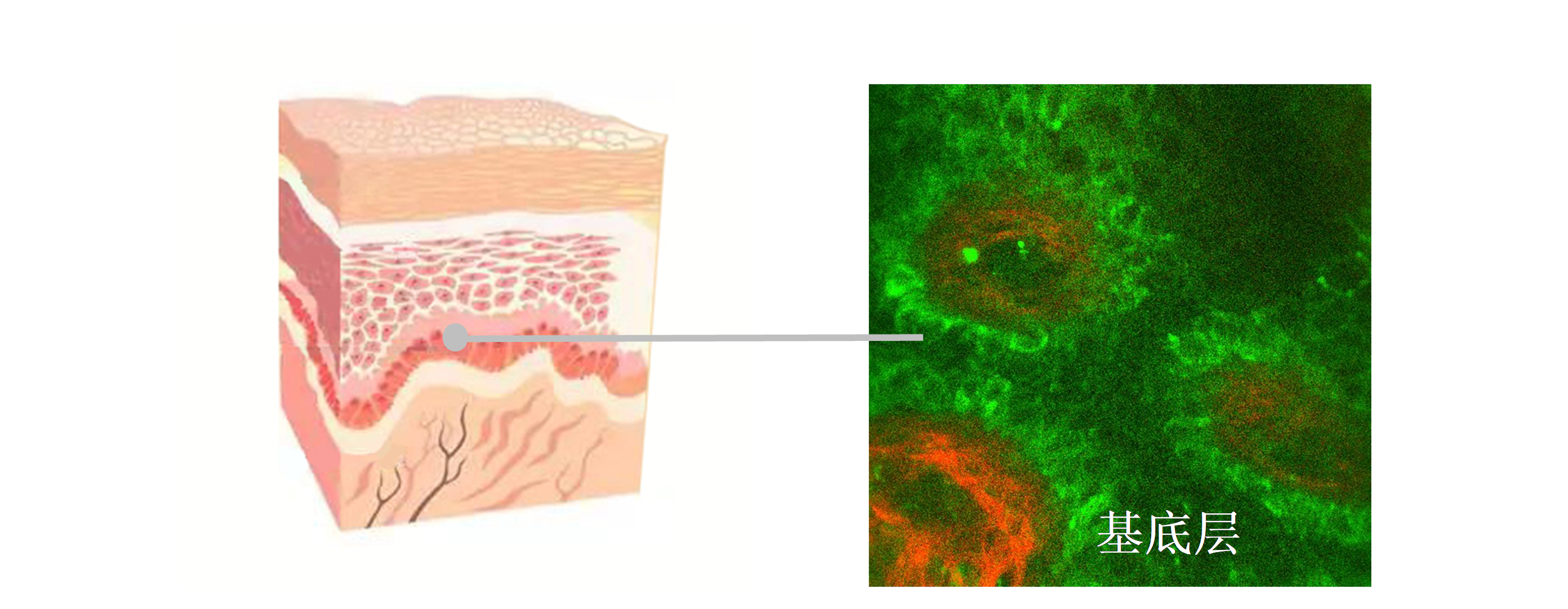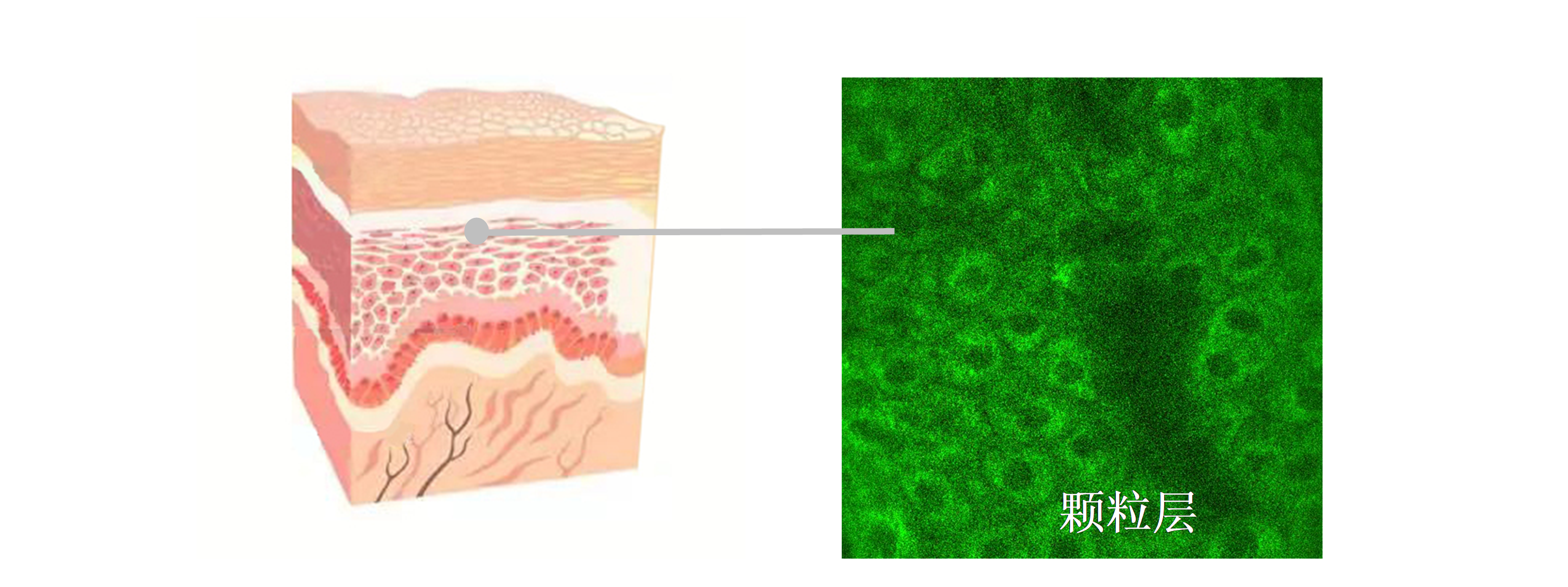 注:双通道指自发荧光通道:角蛋白(角质层)、NAD(P)H&FAD(活角质形成细胞)、弹性纤维(网状真皮层)、黑色素(基底层);二次谐波通道:胶原纤维(网状真皮层)。
