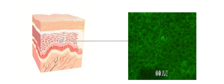 图7. b) 双光子显微镜:双通道天然水平光学切片成像(图源来自CIRS化妆品功效临床评价实验室)